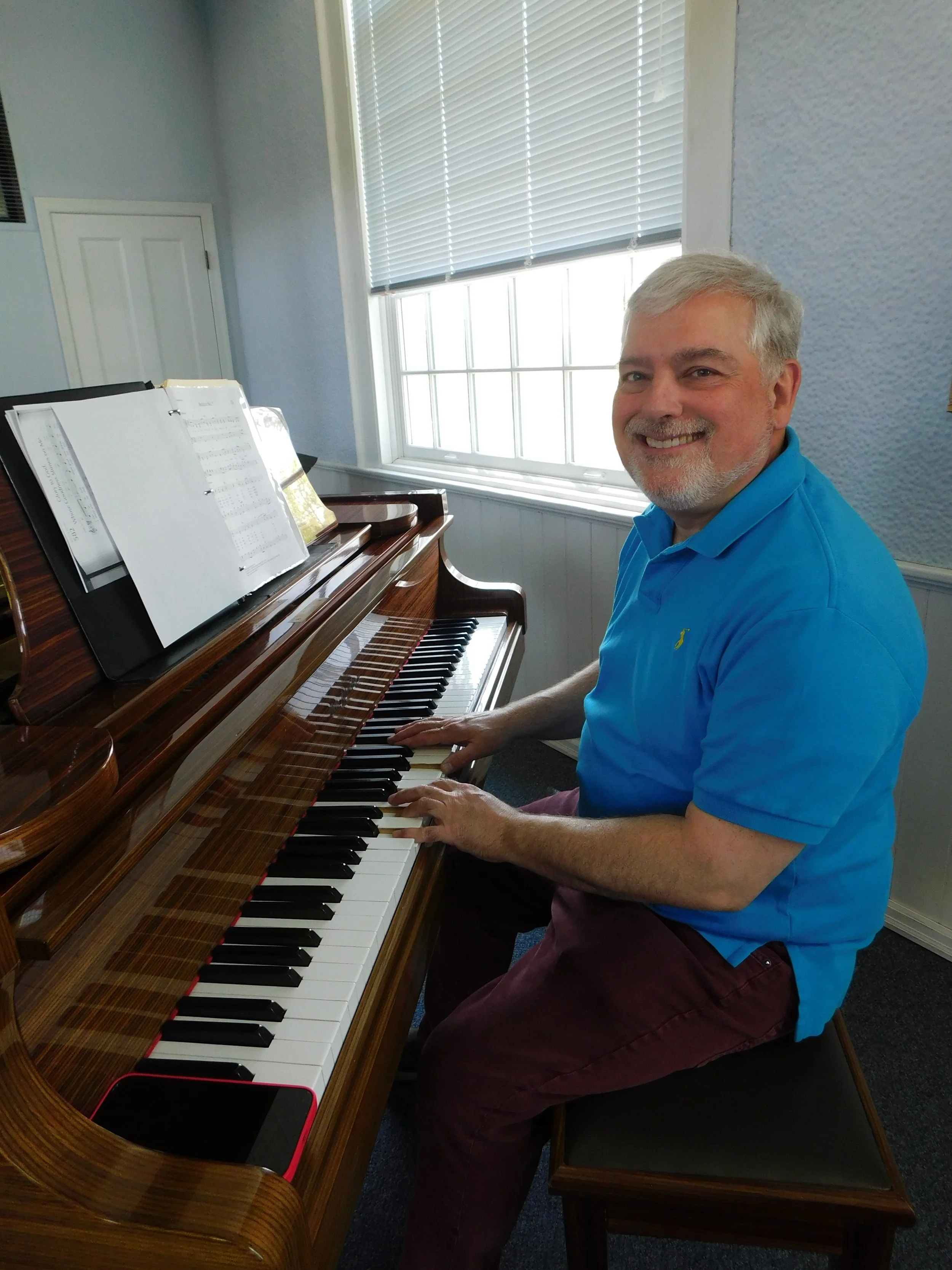 He enjoys cooking, eating, and watching crime shows and some would say, loves to talk! You’ll find him at the organ or piano at Sunday worship.